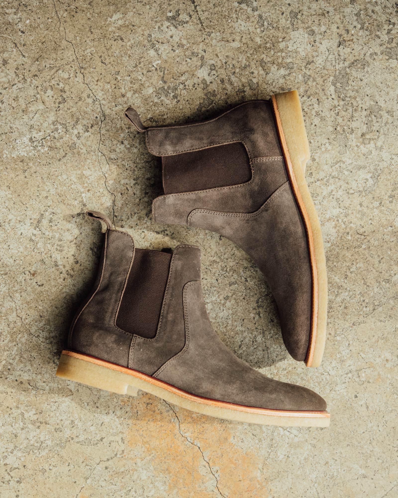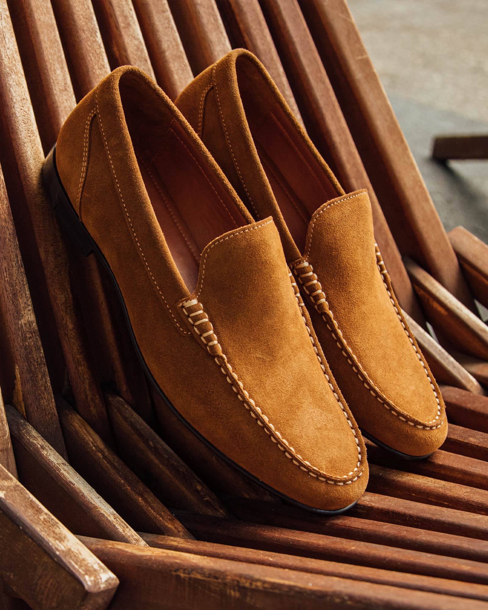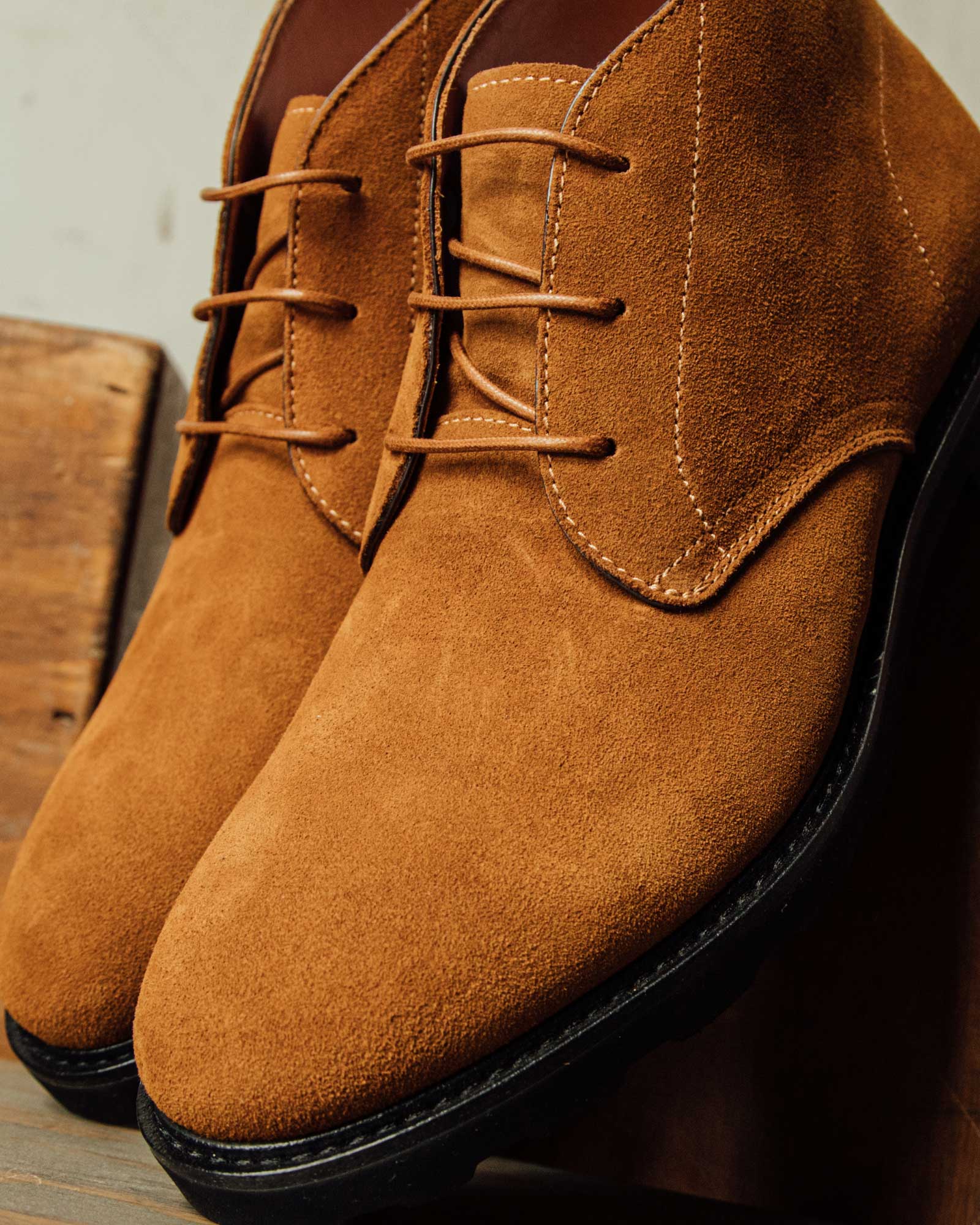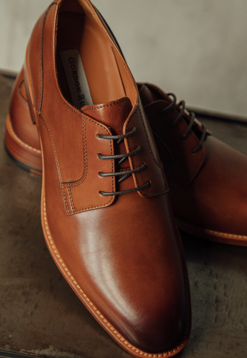 A traditional oxford with a round chisel toe. Where most oxfords use one continuous cut of leather, we separated the upper into different panels to create more points of visual interest. The toe box has a lower profile, and we opted for a natural leather sole to keep things laid-back. The result is a sleek, pared-down dress shoe that’s far from formal.